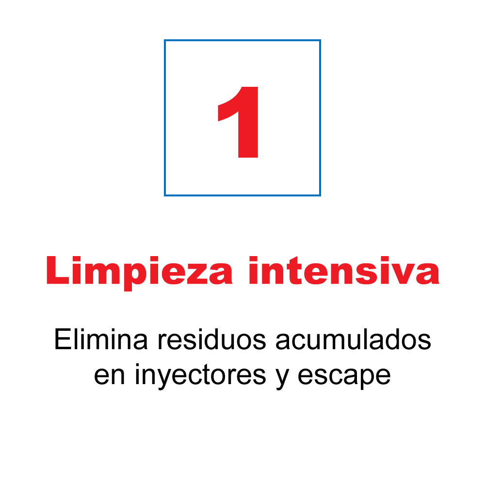 Limpieza de Flujo. Utiliza tecnología de catálisis para limpiar donde otros no llegan: inyectores, válvulas y todo el sistema de escape (Turbo y Catalizador). Elimina la carbonilla acumulada y devuelve al motor su capacidad de respuesta